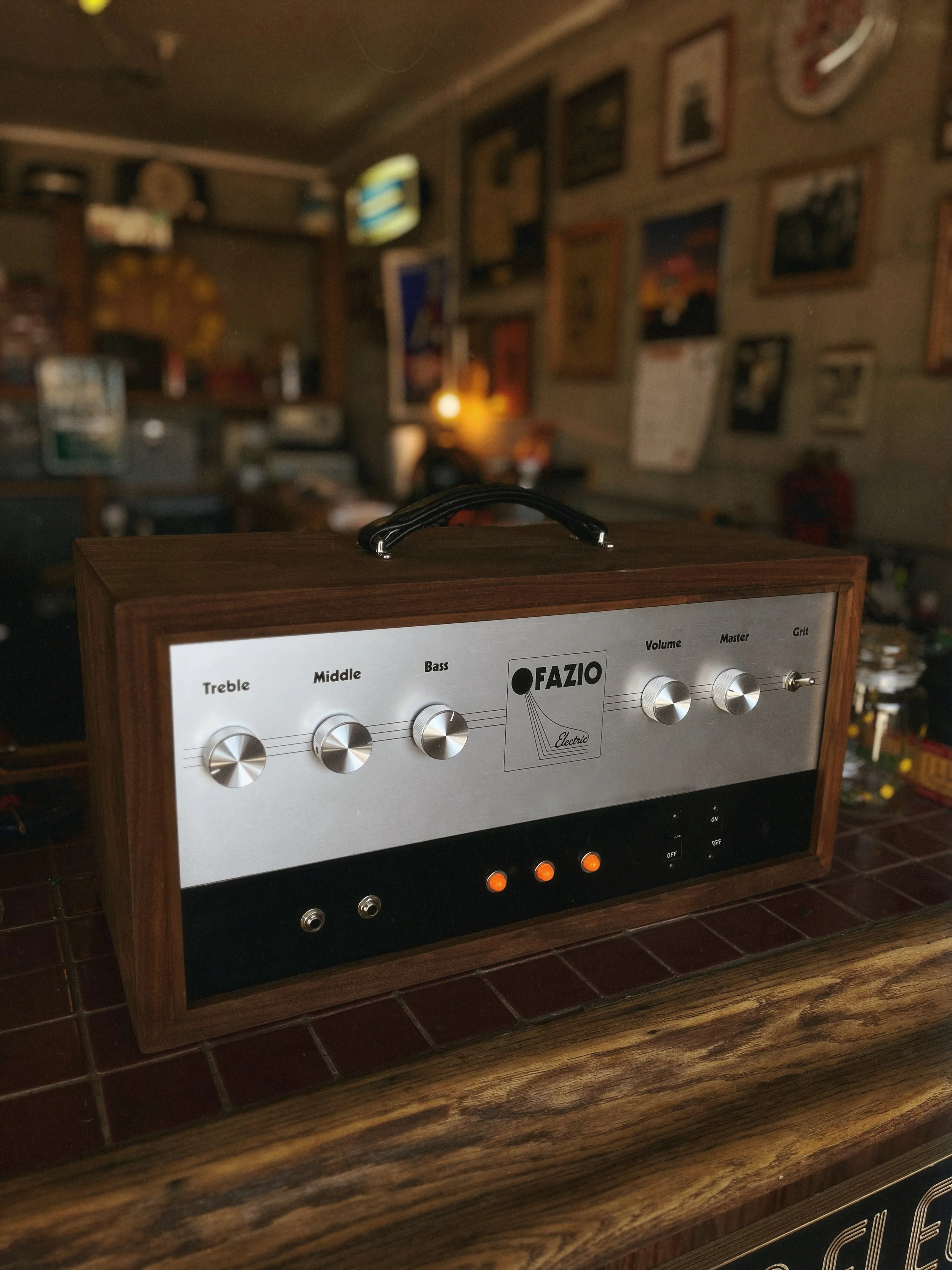 Inlay design and knobs are customizable. Email fazioamps@gmail.com to get on the waitlist, and to inquire about custom requests.